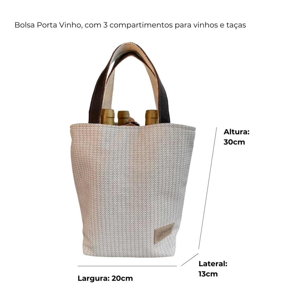 | Produto | Bolsa multiuso para transportar garrafas e taças com elegância e praticidade |