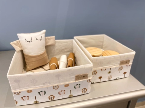 | Descrição | • Caixas ideais para guardar itens de higiene ou brinquedos infantis • Em tecido 100% algodão • Parte da coleção exclusiva Retecer “Floresta das Araucárias” • Estruturadas com placas recicladas de garrafa PET • Para lavar o tecido, basta retirar as placas internas |