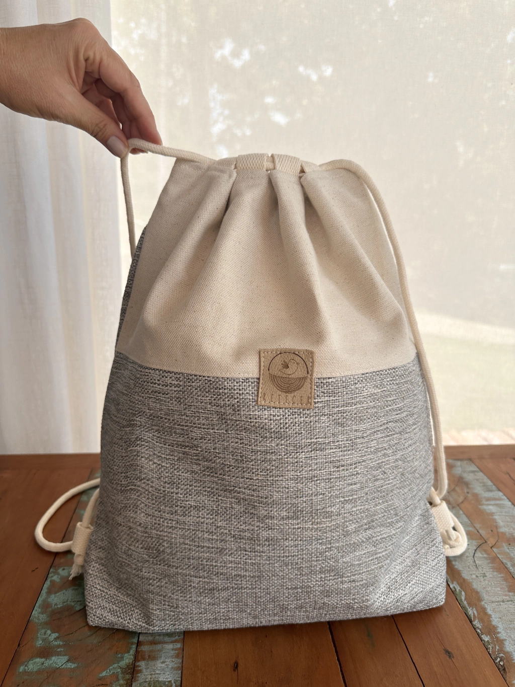 | Estrutura | • Revestida com sarja offwhite • Alças de cordão em algodão cru • 3 bolsos internos (celular, chaves e pequenos itens) |