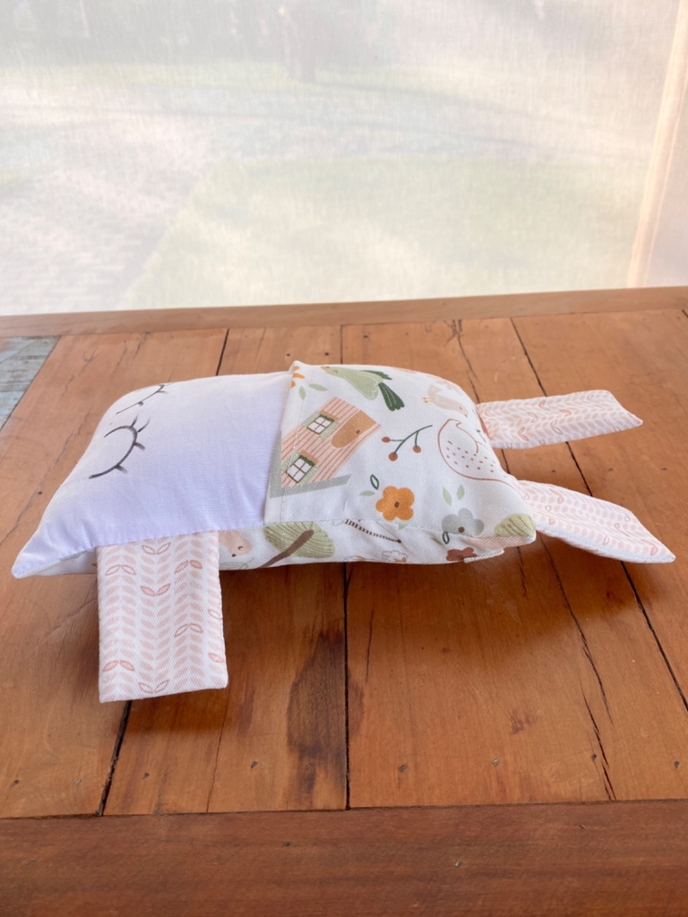 Fabricado em tecido de algodão da coleção de estampas exclusivas Retecer “Floresta das Araucárias”, para aproximar a Natureza do Universo Infantil. Na estampa Canteiro, fauna e a flora são apresentados de forma bem lúdica. Nessa floresta de araucárias vivem os esquilos, pacas, quatis, tucanos, gralhas e papagaios. As flores remetem aos manacás da serra, também presentes nesses locais.
